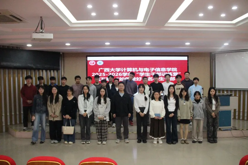 研究生会在学院214报告厅成功举办了“学生干部训练营”第五期培训——如何做好一名学生干部。本次活动旨在帮助同学们清晰认知学生干部的职责与价值,掌握工作方法与技巧,激发服务集体、锻炼自我的热情。活动特邀我院辅导员林文潮老师担任主讲嘉宾,由我院研究生会成员阮梅琳同学主持。